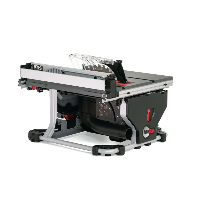 SawStop’s smallest, most portable saw yet – with everything you’ve come to expect from a SawStop. This Compact Table Saw is packed with features that bring power, precision, cut capacity, and safety to every job site. The table saw’s unique brake design detects hand or finger contact with the saw blade within milliseconds, instantly stopping and retracting the blade, helping to avoid serious injury. In addition to the groundbreaking safety features, SawStop manufactures one of the most precise saws on the market. The fit, finish and tolerance levels are second to none. The rack and pinion fence is easy to adjust and always square, and the built-in high and low shelf supports all kinds of cuts. All blade adjustments are made from the centrally located knob, which allows for quick and easy tilting of the blade to your ideal angle with just one hand. Dial in your precise settings with the micro-adjust feature.