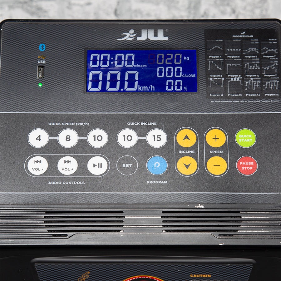 5" backlit monitor displaying time, speed, distance, pulse and calories